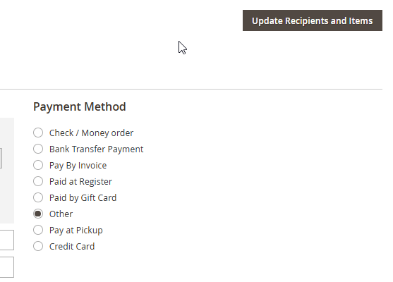 After adding a new recipient, choose quantities for each products. When done, click button `Update Recipients and Items`. And choose a payment method