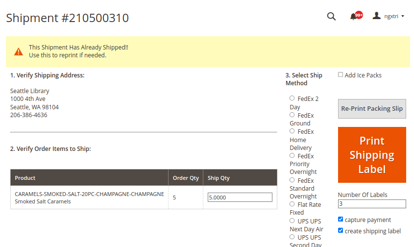 For example, admin chooses Number Of Labels = 3 , and click `Print Shipping Label`